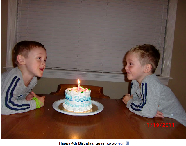 Your Birthday party was so much fun this past Saturday. Your Mom and Dad wanted to give you a party over here at our place cause there was more room for the Bounce House, Treasure Hunt and PiƱata. We are so glad it was a pretty day. Happy to have the cousins, uncles and aunts here as well. Five is such a special Birthday. Look at these photos of you guys having FUN. Grandma thinks she has one Birthday photo taken of Aunt Jean & I when were were kids. We were 1 year old. After that? Take lots of pictures, boys. You'll have them to look back on and give you so many fun memories! Soon it will be Caden's 3rd birthday. He's an April 15th baby. And then your sister Ella will be 2 on May 6th. She shares her birthday with her Daddy, her Grandma and Aunt Jean. A real busy day for births! Kaitlyn was just 5 months. The way time flies, we'll be at her birthday party soon. I just wanted you to know how much you BLESS Papa's and my life. We thank God for you every single day. We love you dearly!