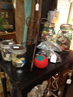 I've been back and once again took a lot of pictures of WHAT all they have in this cute shop. They have so many talented vendors in the shop. They have an "eye" for setting up their own shops to be Very appealing to the eye. I find it so fun to walk among all the items that "remind" me of some days past. Mostly, I just like "vintage" things. I have a silver oil lamp I must tell my sister-in-law about. I bet she and Bill already have a silver one, but it won't hurt to tell them. I apologize in advance that my pictures are not as sharp this go round. I used my phone before too. What looked alright on my phone is actually blurred somewhat. I will go ahead and share. At the end of this post, I'll remind you (again) of the location of the Shop. And now, grab a beverage and see IF you spot anything you want to have a personal look at........